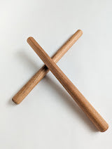 Tap, click, scrape, and play! These Cherry Rhythm Sticks are a delightful way to explore sound, coordination, and steady beat. Crafted from smooth, solid cherry wood and finished with a natural beeswax polish, they offer a warm tone and a satisfying tactile feel in small hands.