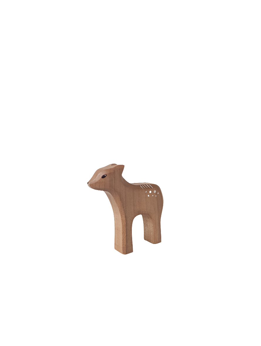The Holzwald Deer stands tall with quiet strength and timeless beauty. Hand-carved from natural wood and painted in earthy tones, this elegant figure is perfect for woodland play, nature tables, or seasonal display. It is a peaceful presence in any story you tell.