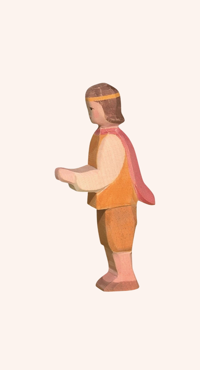 This noble Prince stands poised and ready for adventure, dressed in soft, hand-painted colors that evoke classic fairytales. Carved from solid, sustainably sourced wood, his gentle features and simple, timeless design invite children into stories of courage, kindness, and imagination. Perfect for pairing with castles, dragons, and fellow royal figures in any small-world play.