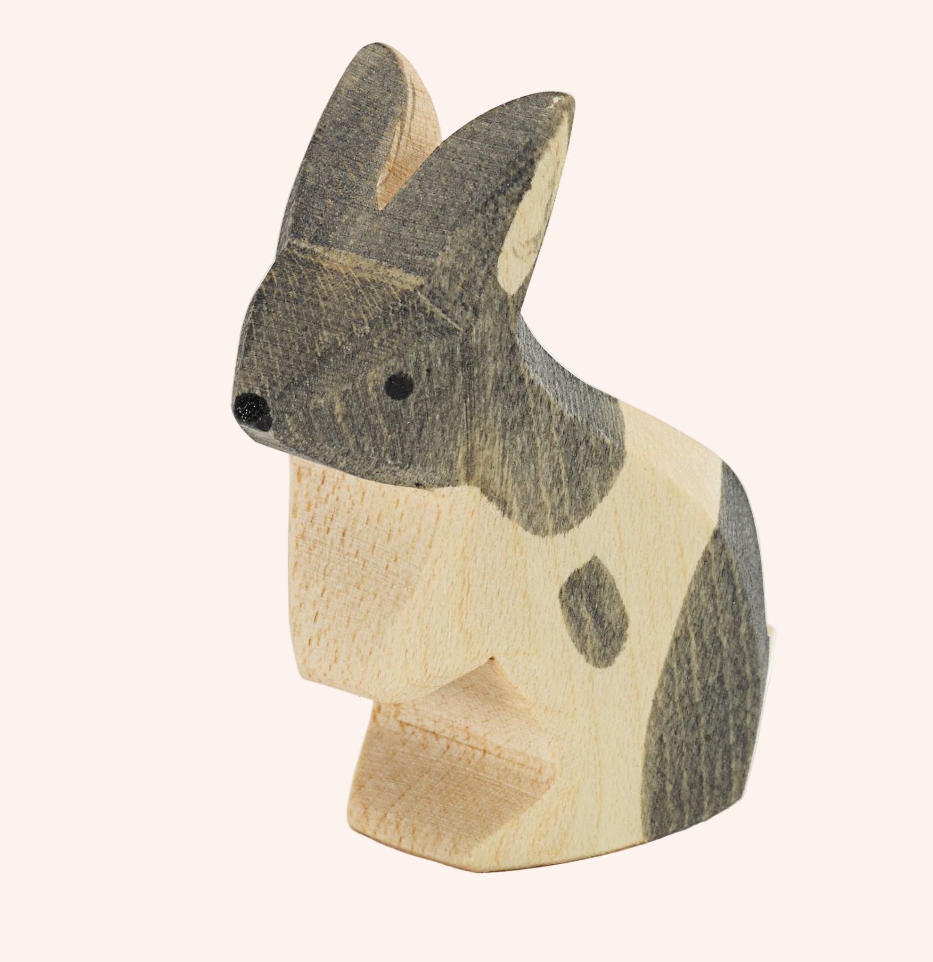 The Black & White Standing Rabbit is a lively figure in Ostheimer’s animal collection, shown upright and alert. Its contrasting markings make it a striking companion for farm, meadow, or springtime play scenes, especially when paired with other Ostheimer rabbits and the Rabbit Hutch.