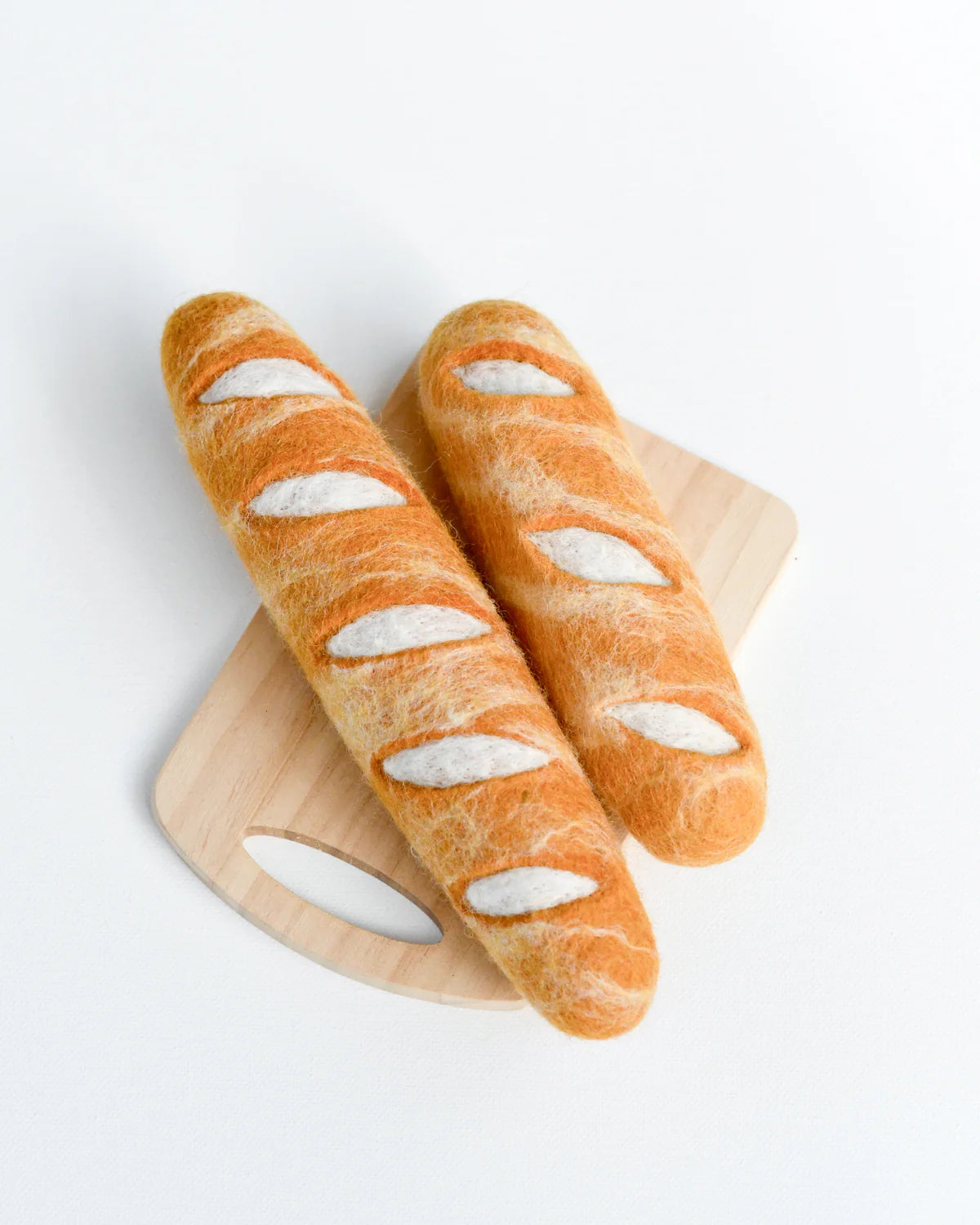 This listing is for a set of 2 baguettes (different lengths). Each baguette has been meticulously needle-felted with dense wool that has been dyed with non-toxic colours, making it safe for play.
