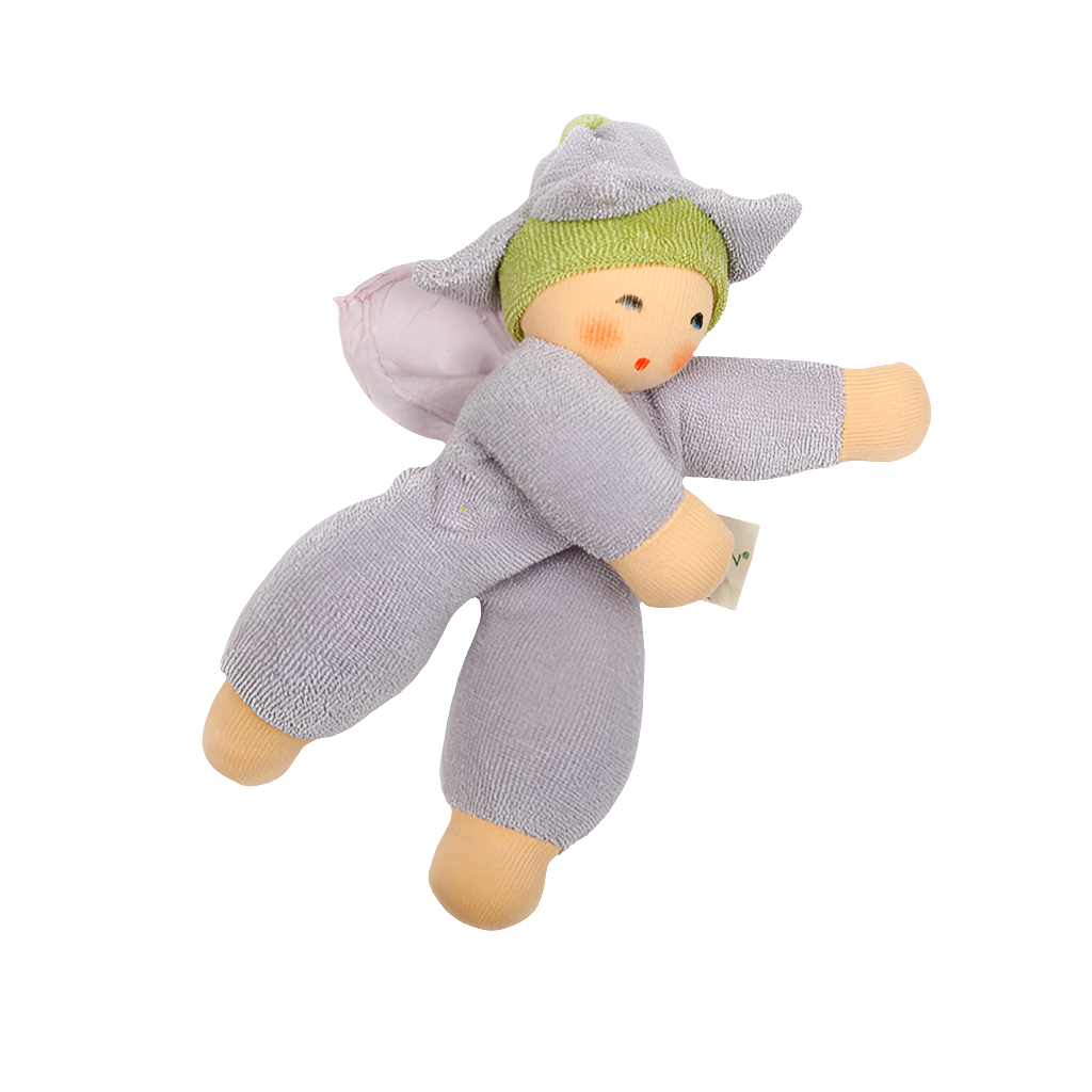 Soft and gentle, the Lilac Flower Fairy is a comforting first doll for little ones to hold and snuggle. Handmade in Germany by Nanchen Nature, she is crafted from velvety organic cotton and filled with pure organic wool—safe, natural materials for babies and toddlers.