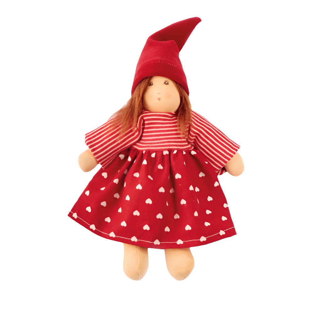 Her cheerful outfit and simple Waldorf-inspired face encourage imaginative play, nurturing, and storytelling. Lightweight and easy to cuddle, Dwarf Frederike makes a delightful first friend or a thoughtful gift for any special child.