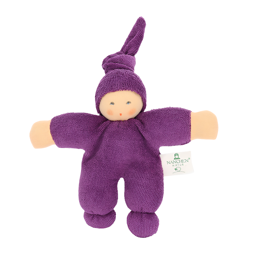 Soft, cheerful, and perfect for little hands, Little Purple is a cuddly first doll for babies and toddlers. Handmade in Germany by Nanchen Nature, she is crafted from organic cotton velour and filled with pure organic wool - safe, natural materials ideal for snuggling and gentle play.