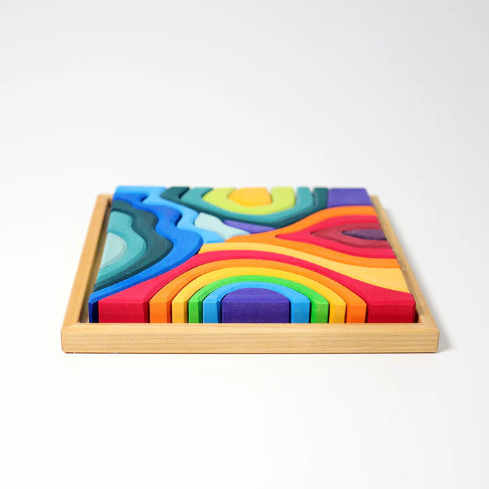 Earth, water, fire, and air: all in perfect harmony. Grimm’s Small Four Elements Building Set captures the spirit of nature through flowing shapes and vibrant colors, inviting children to build landscapes filled with mountains, waves, flames, and wind.