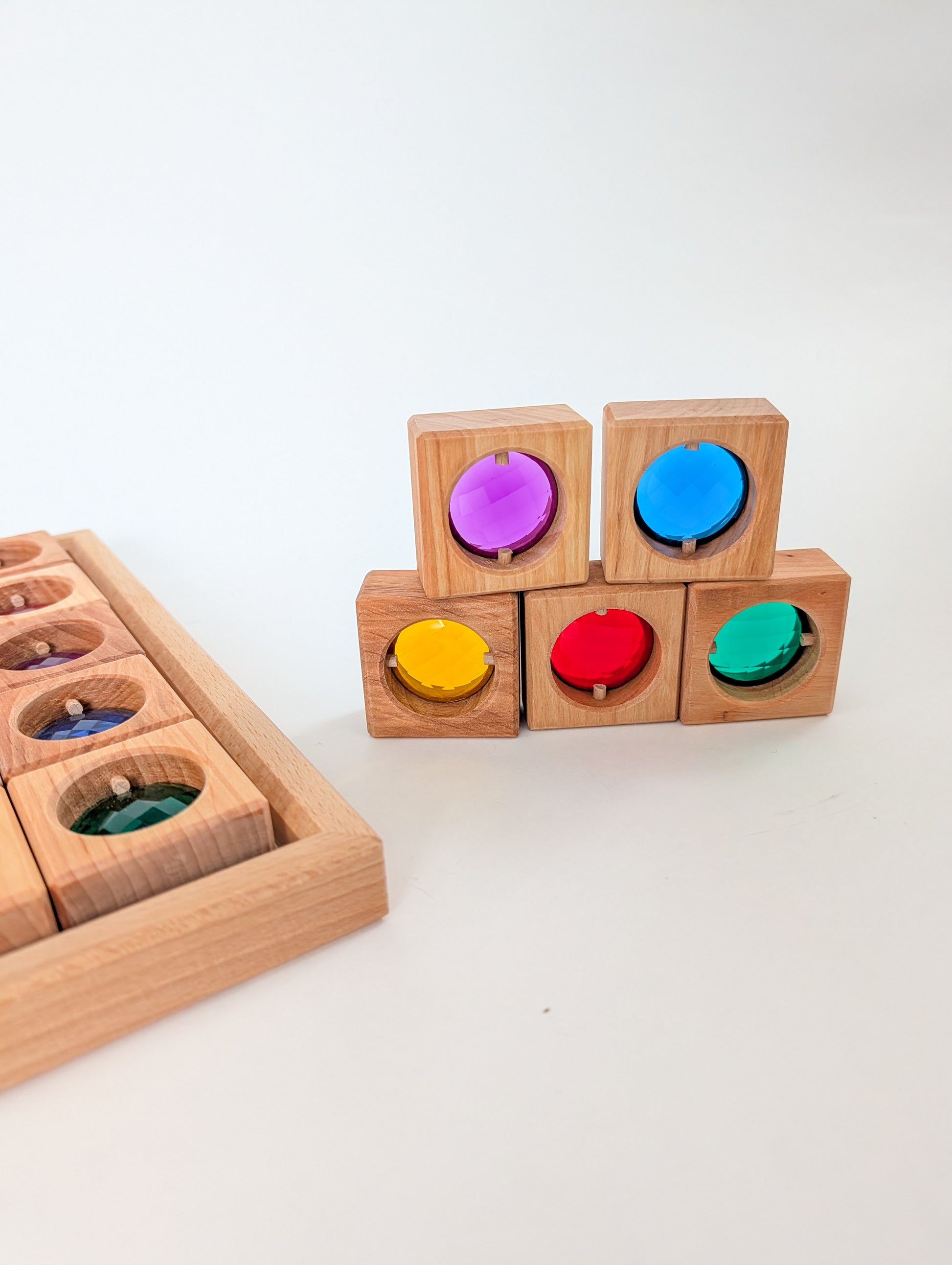 Perfect for stacking, pattern-making, or incorporating into imaginative worlds, these cubes invite children to explore color, symmetry, and design. In sunlight, the gems glow beautifully, bringing warmth and life to their creations.