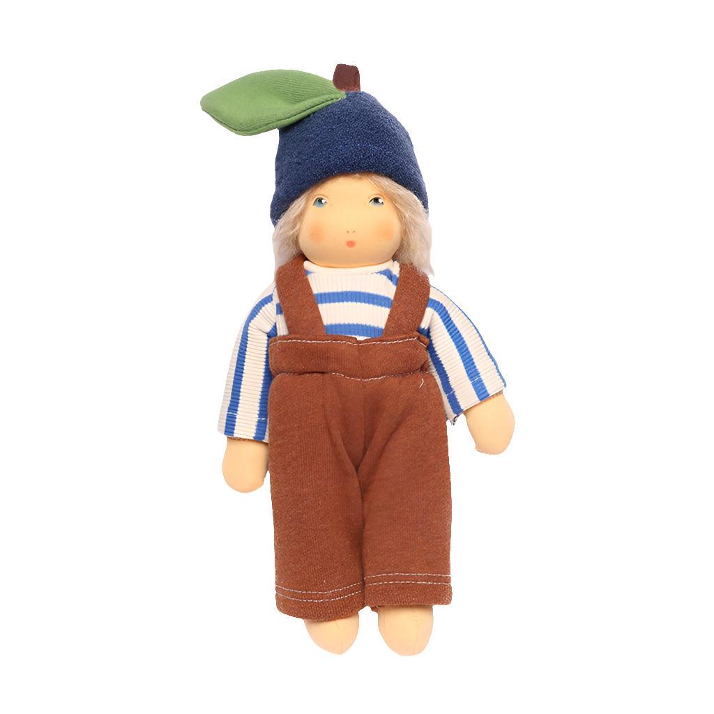 His blueberry-inspired outfit and simple Waldorf-inspired face encourage imaginative play and nurturing storytelling. Lightweight and easy to cuddle, Blueberry Child Bela makes a thoughtful first doll or a delightful gift for any special child.