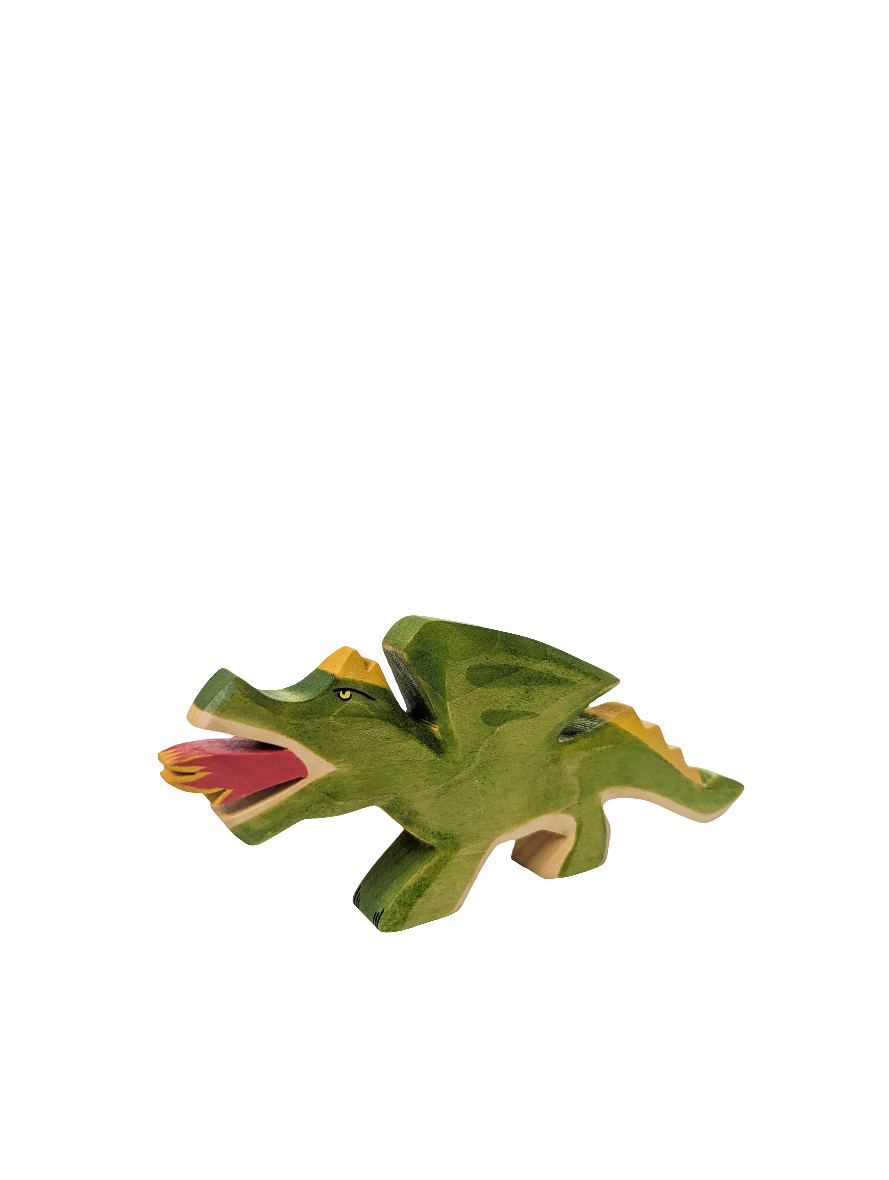 The mighty Holzwald Dragon is one of the most well-known fairy tale and mythical creatures. He takes children on journeys into magical fairy tale worlds and experiences great adventures with them. He has large green wings with which he can soar into the air and a jagged tail. He spits a great flame from his mouth and guards the most precious treasures.