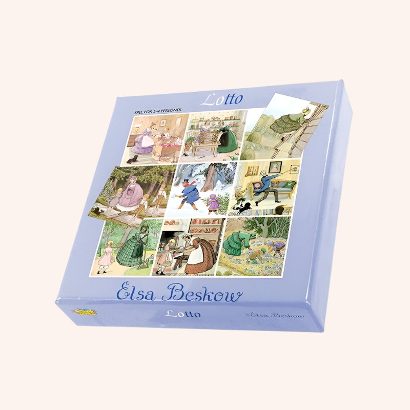 For 2-4 players where each player collects different themes. Elsa Beskow's fairytale lotto game is a simple and fun children's game that can be played in two ways. Features artwork from Elsa Beskow's picture books: Aunt Brown, Aunt Green, and Aunt Lavender / Peter in Blueberryland / The Santa Claus children / The Flower Party in the plot.