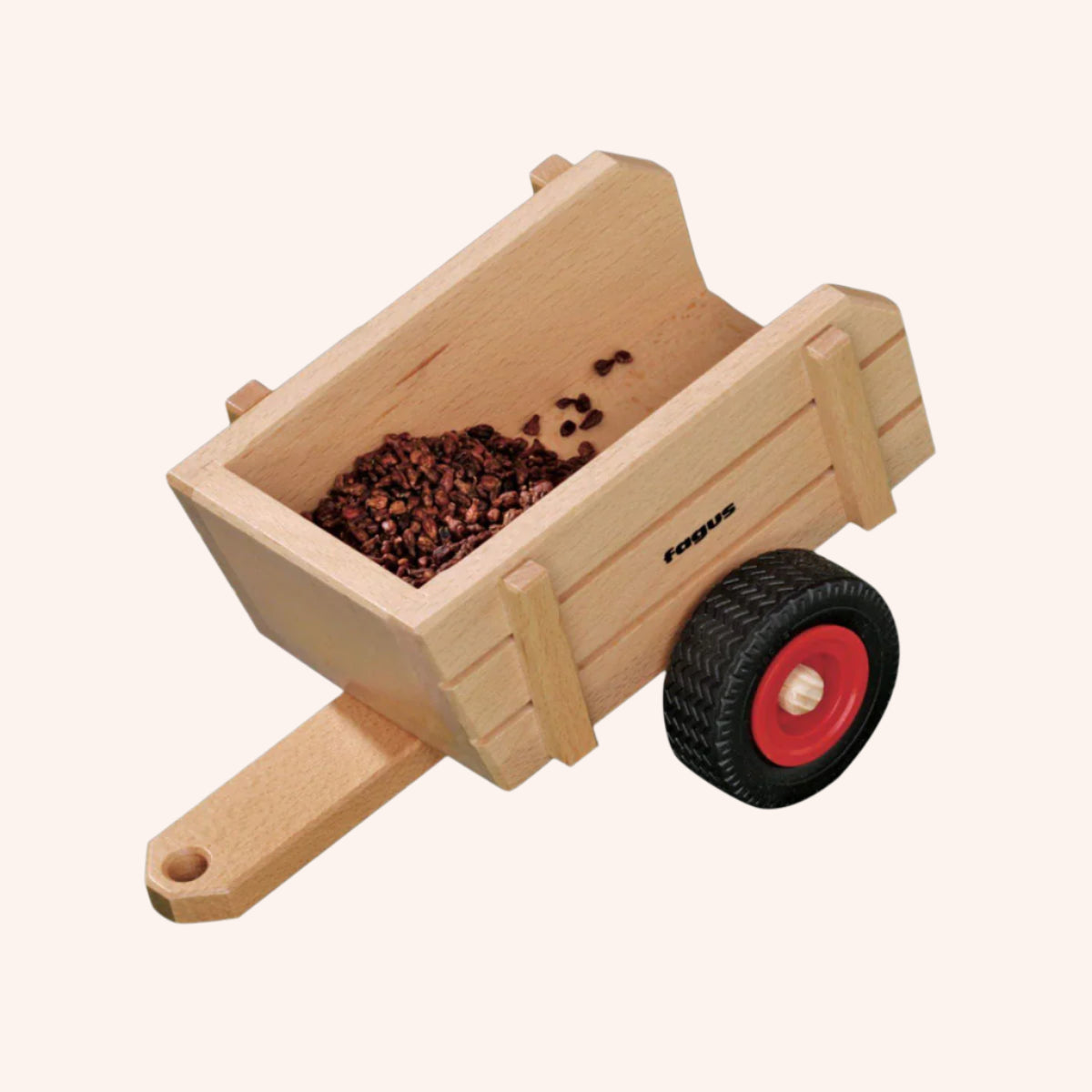 A sturdy wagon to cart around hay, soil, or whatever else is needed on the farm! This versatile Farm Cart attaches to the tractors, the Unimog, or any other Fagus truck with a hitch.