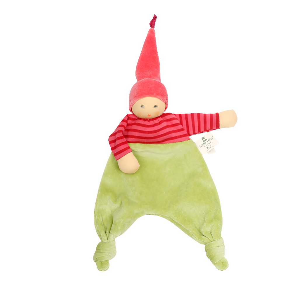 Soft, whimsical, and full of charm, the Forest Elf Pink-Green is a gentle companion for little hands to hold and cuddle. Handmade in Germany by Nanchen Nature, she is crafted from organic cotton velour and filled with pure organic wool - safe, natural materials perfect for babies and toddlers.