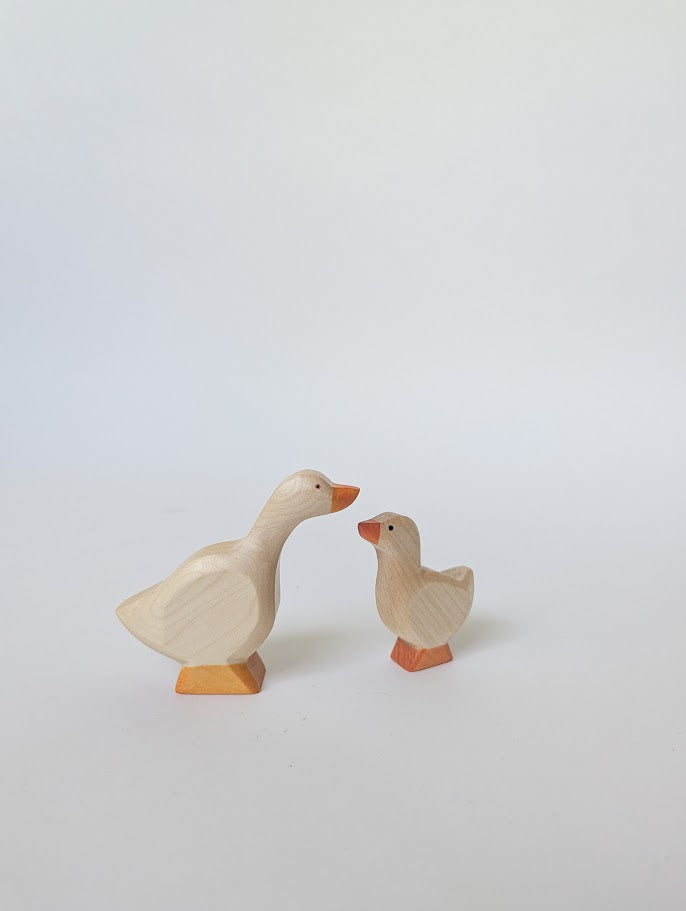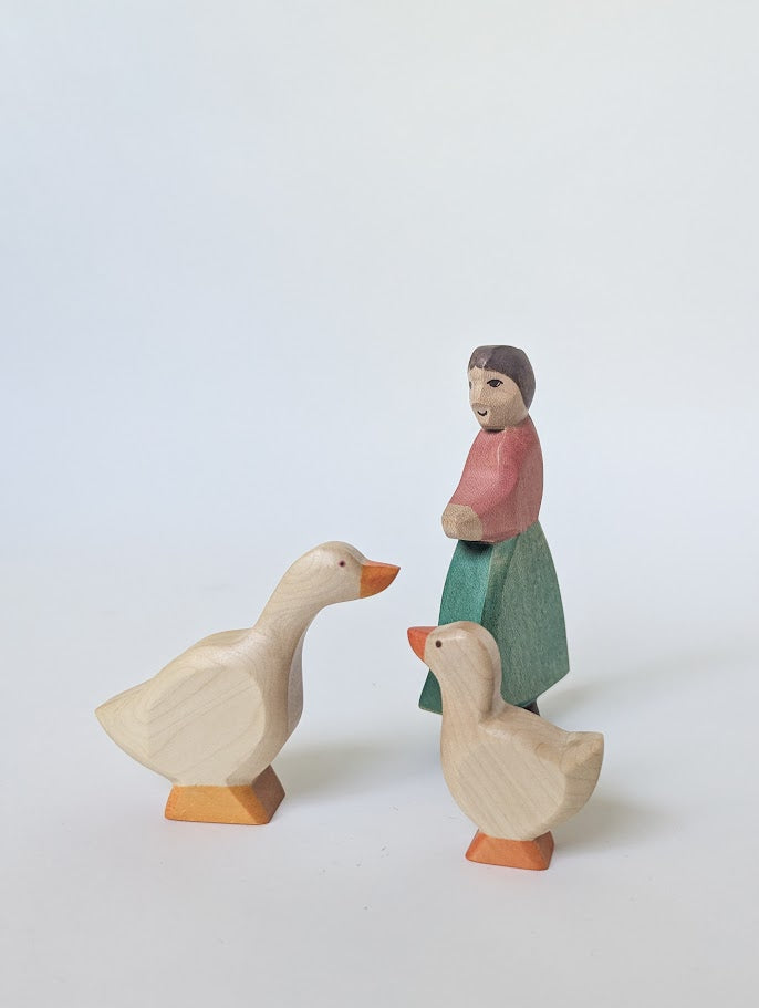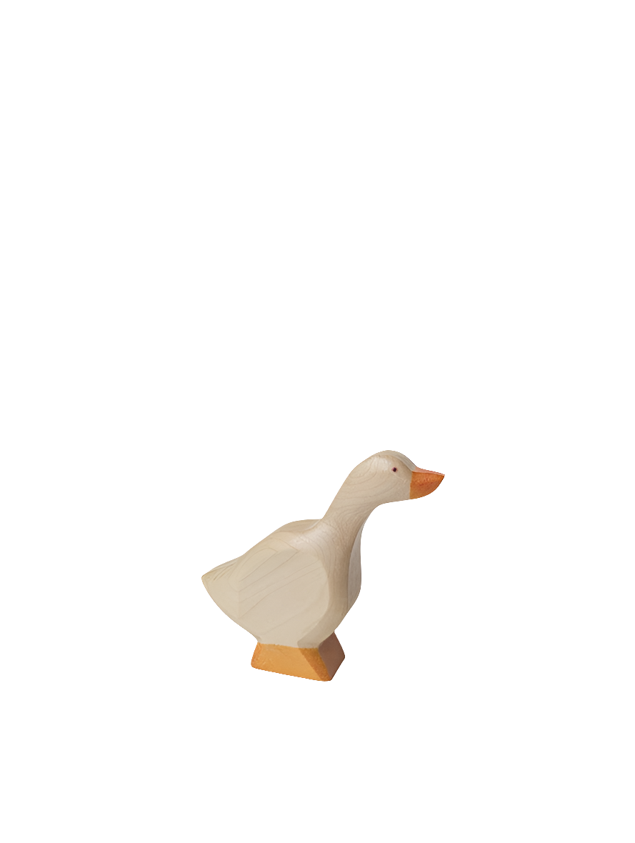 This farm dweller requires little painting, allowing the beautiful grain of the maple wood to shine through. She stretches her long neck upwards to chatter and enjoys roaming the farmyard, searching for treats, or socializing with the farm's other geese and chickens.