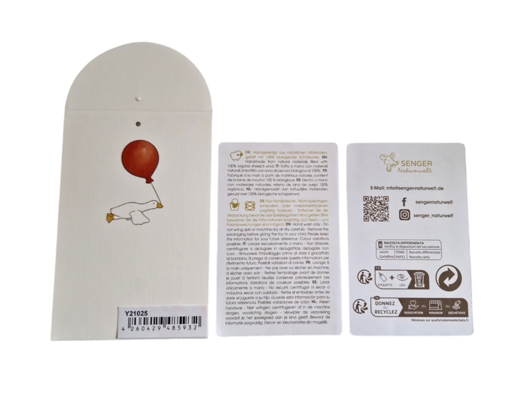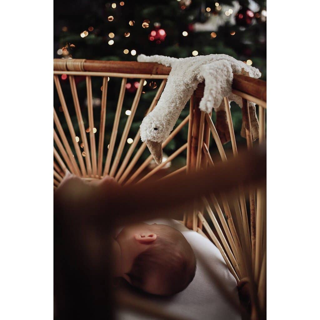 Made from sustainably produced, hand-picked organic cotton, the goose features embroidered eyes for added safety. Inside is a removable pouch filled with natural grapeseeds, which can be gently warmed in the oven or cooled in the freezer to provide soothing comfort, perfect for chilly nights or when little ones need extra care. Soft, friendly, and reassuring, this goose is made to be cuddled and cherished.