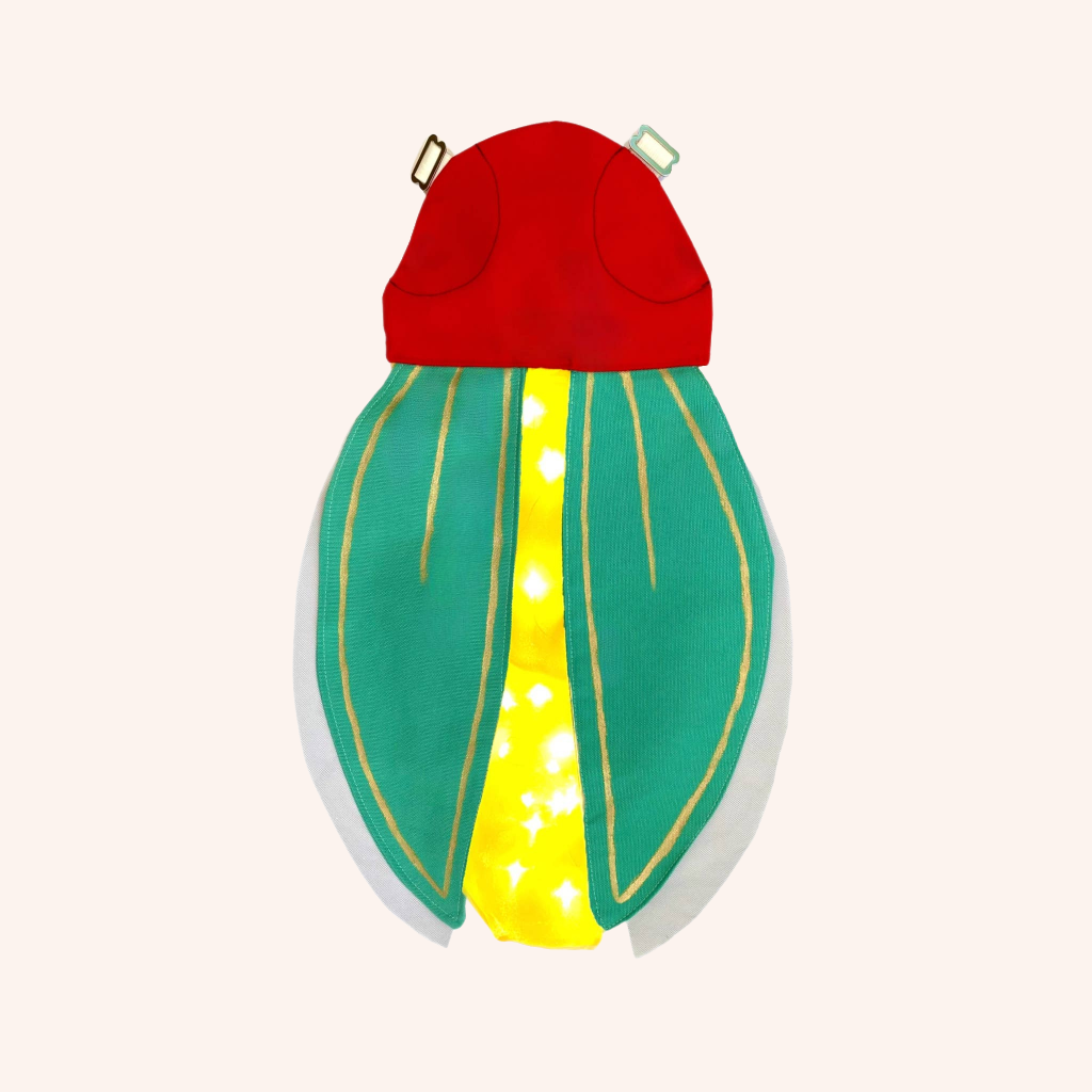 Light up your play with our magical glowing kid's Firefly Costume wings! Featuring fairy lights that flash just like a real firefly in the night, and cotton canvas wings with shimmery gold detail, this unique dress-up costume will spark hours of all-day enchantment. Glow like a firefly and have pretend play adventures for children of all ages.  Pairs well with our Antennae Hat to complete the look.