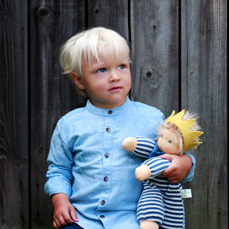 With his simple Waldorf-inspired features and soft, huggable body, King Charles invites children into fairy-tale play while remaining a comforting friend for everyday snuggles. A lovely first doll on his own, or the perfect pair with Queen Louise.
