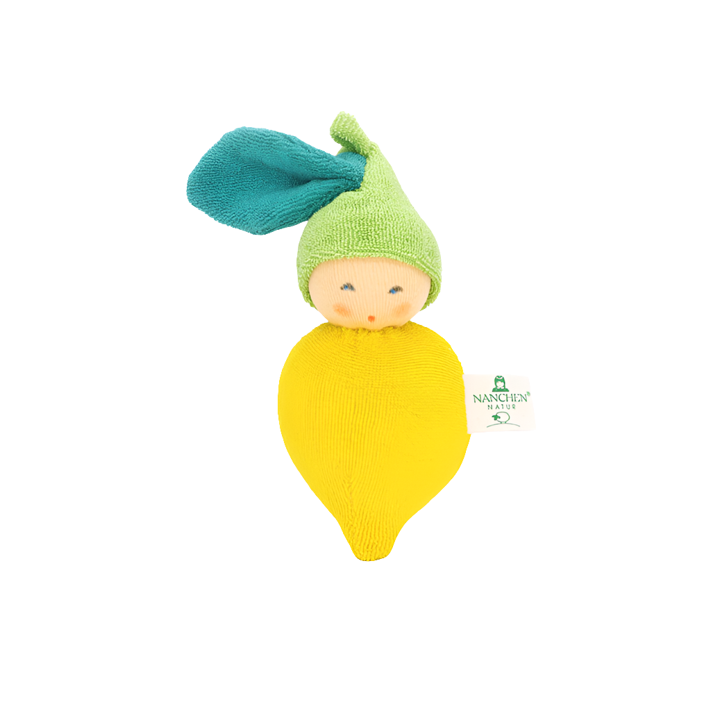 Its sunny yellow color encourages visual stimulation, while its soft, huggable shape provides comfort during playtime or quiet moments. Lightweight and easy to grasp, the Lemon makes a thoughtful gift for any special little one.