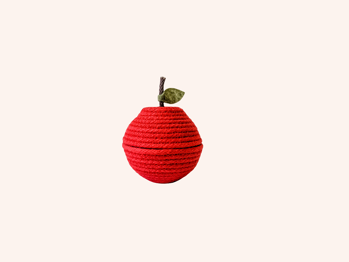 A rope spin on a beloved treat. Although no promises to keep the doctor away, it would make a lovely gift for the teacher in your life, or for the child who is the apple of your eye. Just the perfect size to hold trinkets + keepsakes.