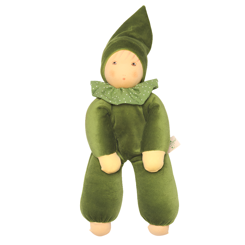 Her deep forest green outfit adds a touch of natural calm, while her simple Waldorf-inspired face encourages gentle, imaginative play. Lightweight and easy to cuddle, Nani Forest Green makes a delightful first friend or a thoughtful gift for any special child.