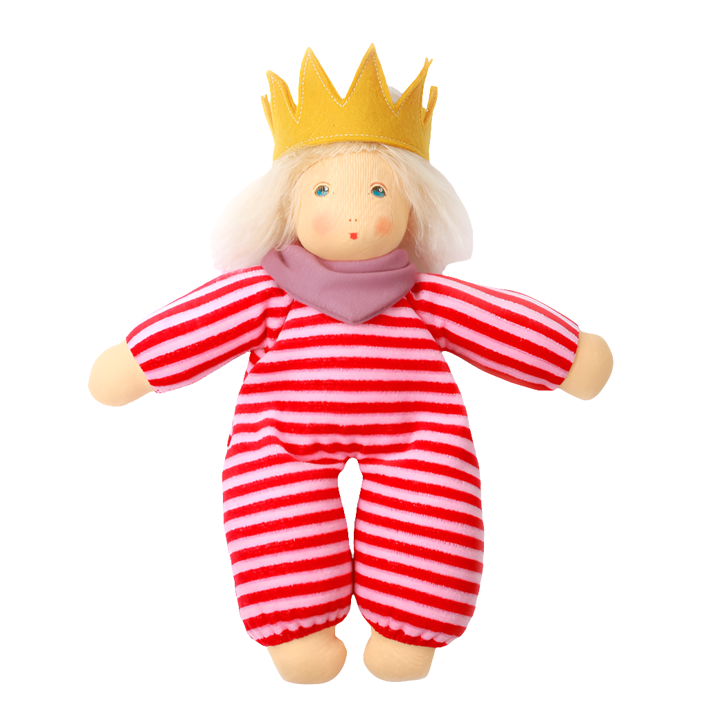 Her simple Waldorf-inspired face and classic design encourage children to create their own stories, whether she is a queen, a kind mother, or a beloved friend. Lightweight, cuddly, and easy to carry, Queen Louise makes a wonderful first doll and a thoughtful gift.
