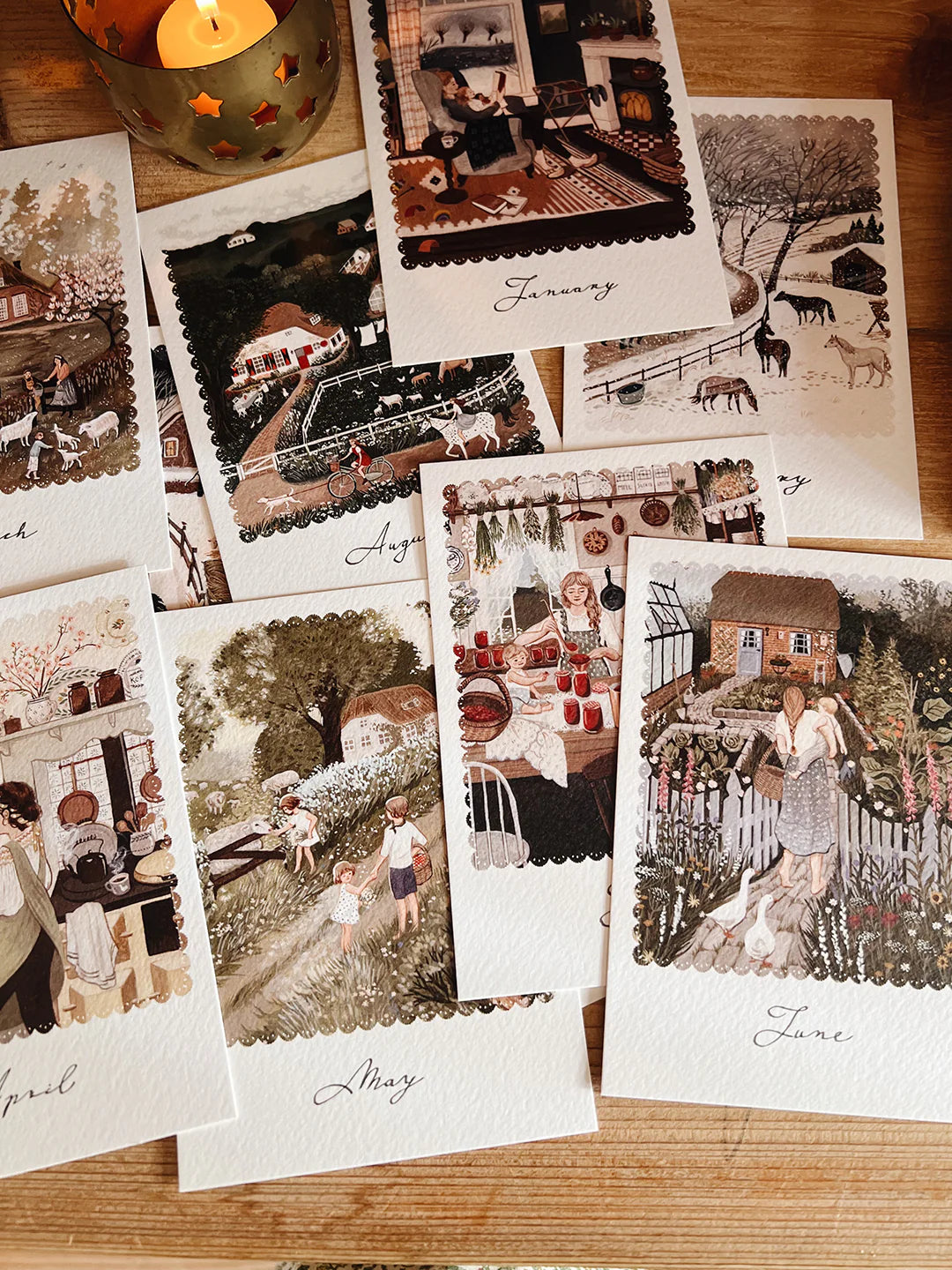 Celebrate each month with this set of 12 display cards (A6), each thoughtfully painted to capture the mood of the season.