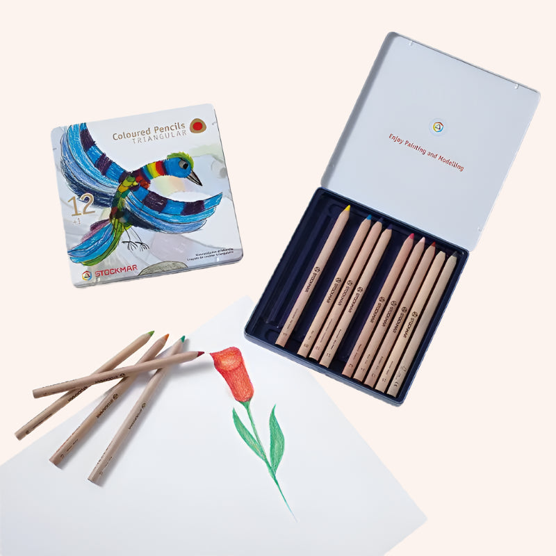 Stockmar Triangular Coloured Pencil Set - 12 assorted colors + graphite pencil