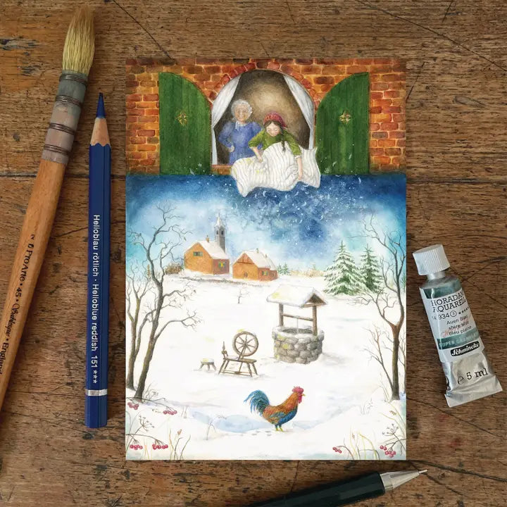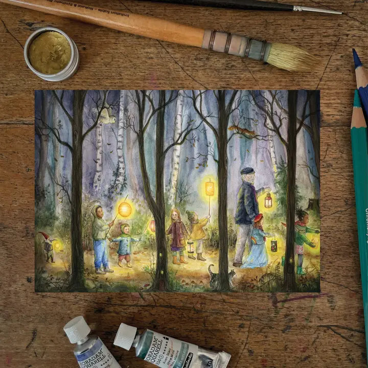 Mhairi Hellbrandt’s postcards capture quiet, nostalgic moments through soft, watercolor illustrations. From cozy cottages to woodland creatures, each card is a small work of art—perfect for seasonal displays, thoughtful notes, or adding a touch of warmth to your child’s environment.
